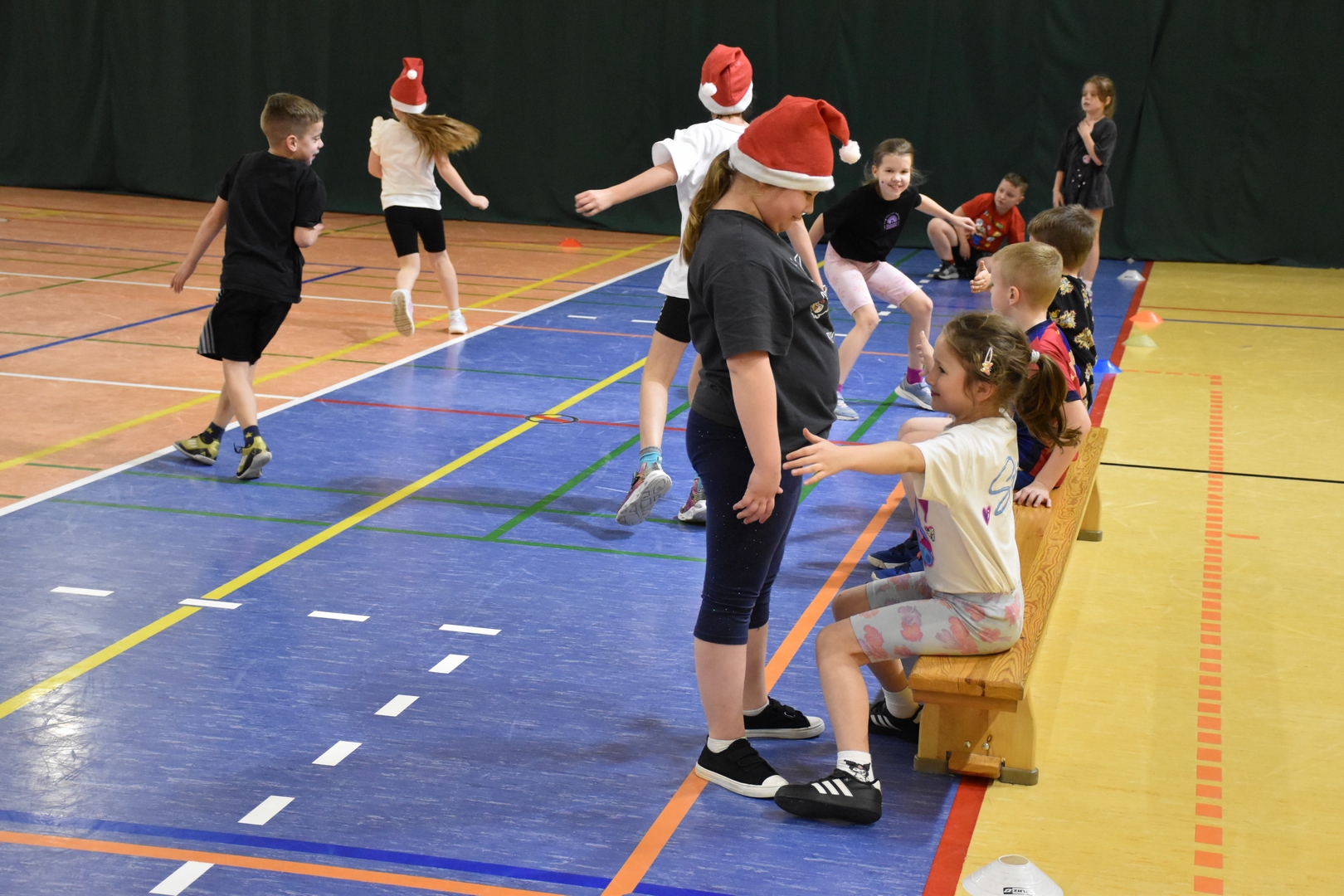 Ostatnie spotkanie w tym roku nie mogło się odbyć bez akcentu świątecznego. W trakcie zajęć uczestnicy brali udział w różnego rodzaju zabawach biegowych. Był berek reniferek, berek z Mikołajem i wiele innych.