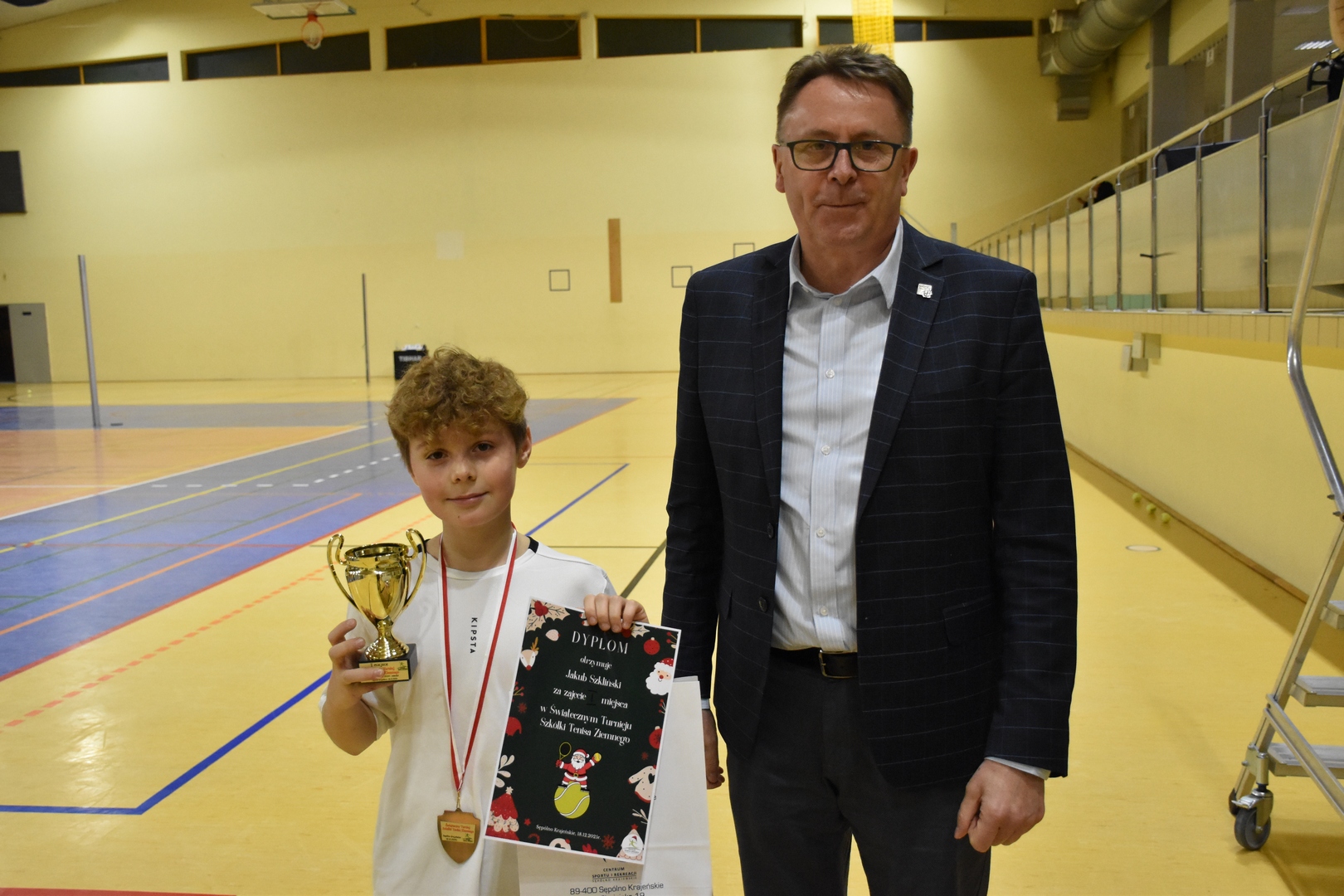 18 grudnia 2025r. w hali Krajna Arena odbył się Świąteczny Turniej Szkółki Tenisa Ziemnego. Do rywalizacji przystąpiło 15 z 21 osób na co dzień trenujących w czterech różnych grupach w Centrum Sportu i Rekreacji w Sępólnie Krajeńskim. To najliczniejszy sezon pod względem młodych tenisistów od czasu powstania Szkółki Tenisa Ziemnego, czyli od 2016 roku. Z okazji zbliżających się Świąt Bożego Narodzenia zawodnicy mieli możliwość wspólnej rywalizacji. Ze względu na dużą rozbieżność wiekową zmagania podzielono na dwie kategorie: klasy 5 i młodsze oraz klasy 6 i starsi. W tej pierwszej najlepiej poradził sobie Jakub Szkliński, który pewnie wygrał wszystkie swoje pojedynki. W drugiej kategorii tytuł z poprzedniego turnieju obronił Alex Dobek. W meczu o drugie miejsce (po bardzo zaciętym pojedynku zakończonym tie-breakiem) Nina Rykert pokonała Liwię Jaginiak. Cieszy stale rosnąca forma młodych tenisistów oraz liczba młodzieży grających w tenisa.