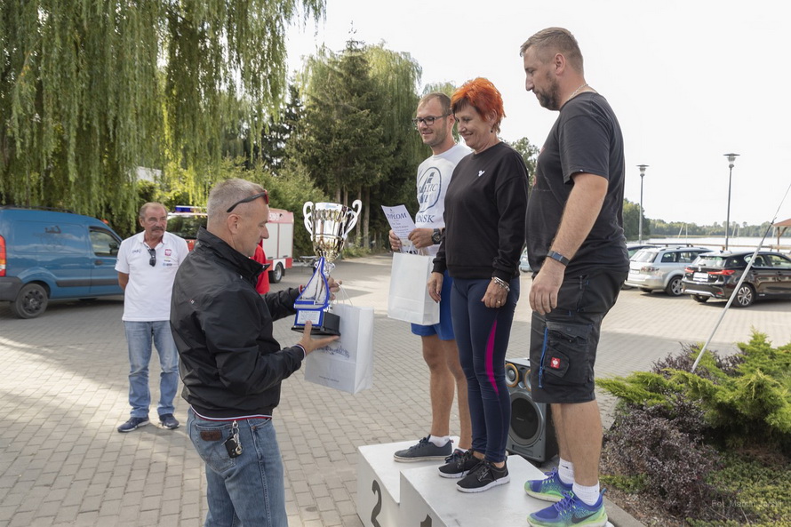 fot.: Burmistrz Sępólna Krajeńskiego Waldemar Stupałkowski wręcza załodze reprezentującej Gminę Żnin - Puchar Marszałka Województwa Kujawsko-Pomorskiego
