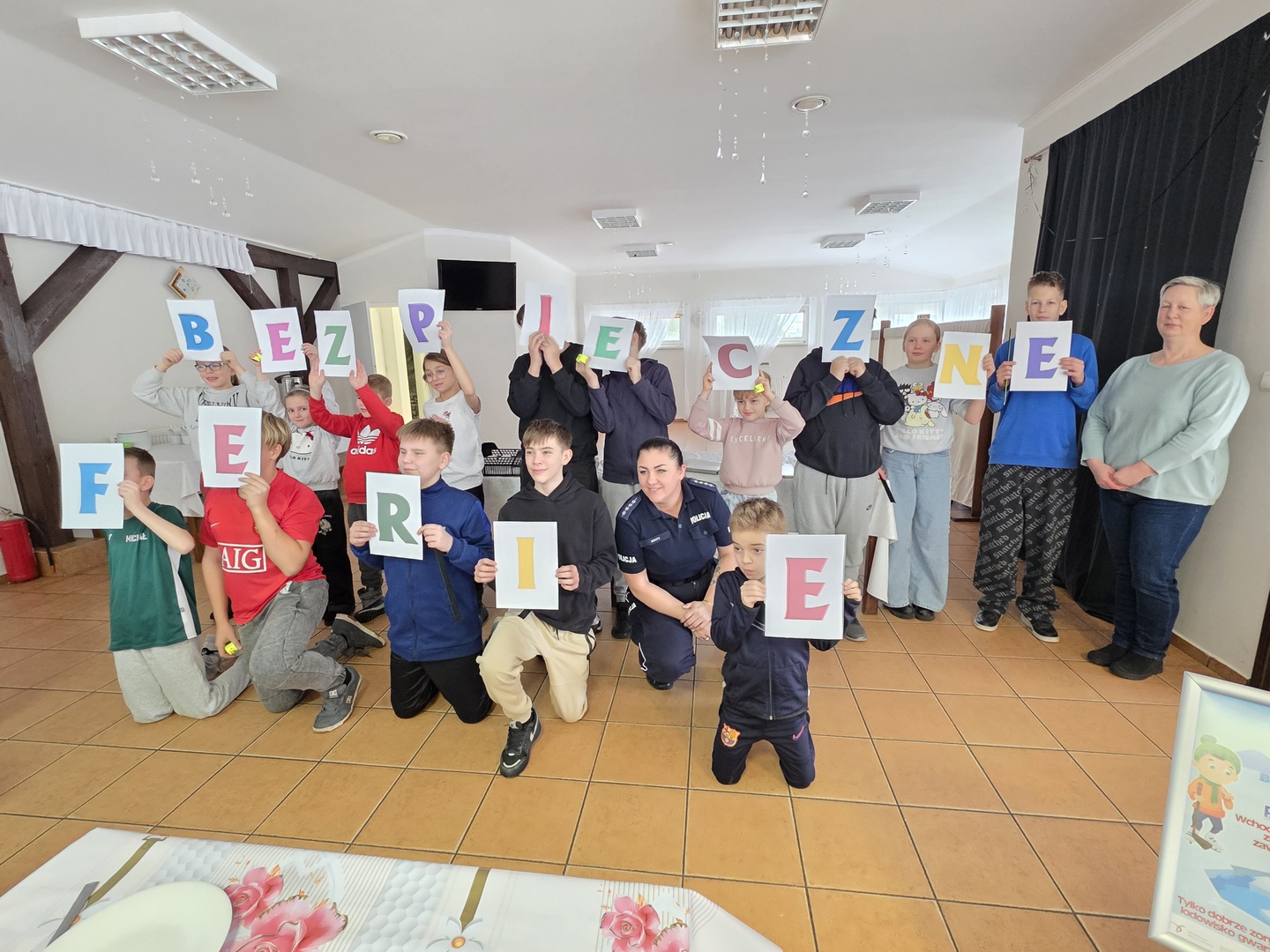 W trakcie półkolonii dzieci wzięły udział w spotkaniu z policjantkami z Komendy Powiatowej Policji w Sępólnie Krajeńskim oraz przedstawicielką Powiatowej Stacji Sanitarno - Epidemiologicznej w Sępólnie Krajeńskim. Wizyta dotyczyła zasad, jakich powinno się przestrzegać, aby bezpiecznie spędzić ferie zimowe.