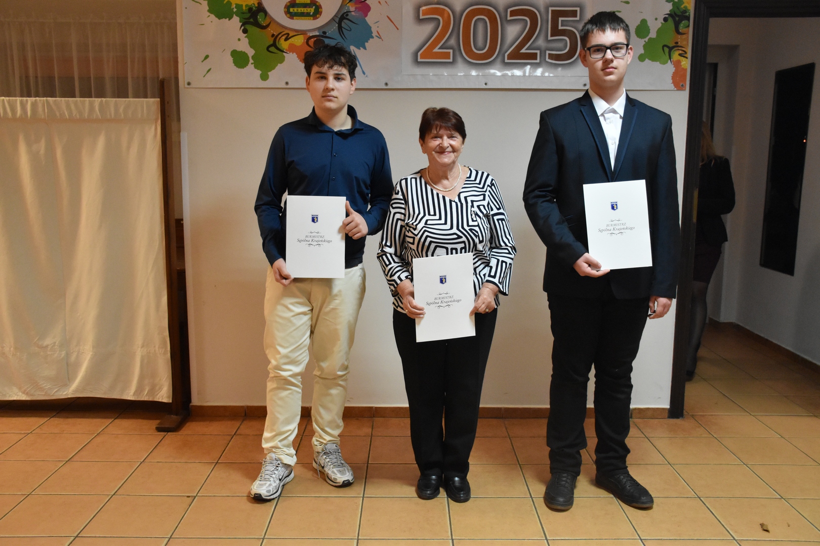 Zanim nagrodzona została uzdolniona młodzież oraz dorośli głos zabrał Burmistrz Sępólna Krajeńskiego Waldemar Stupałkowski, który dziękował wszystkim za włożony trud w codzienną pracę na treningach i osiągnięte wyniki sportowe w 2025r. Oprócz Burmistrza Sępólna Krajeńskiego nagrody wręczali Przewodniczący Rady Miejskiej Artur Juhnke oraz Prezes MLKS Krajna Sępólno Tomasz Aderjahn.